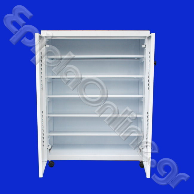 Διαθέτει δύο πόρτες, περσίδες για εξαερισμό και ρόδες για άνετη μετακίνηση.